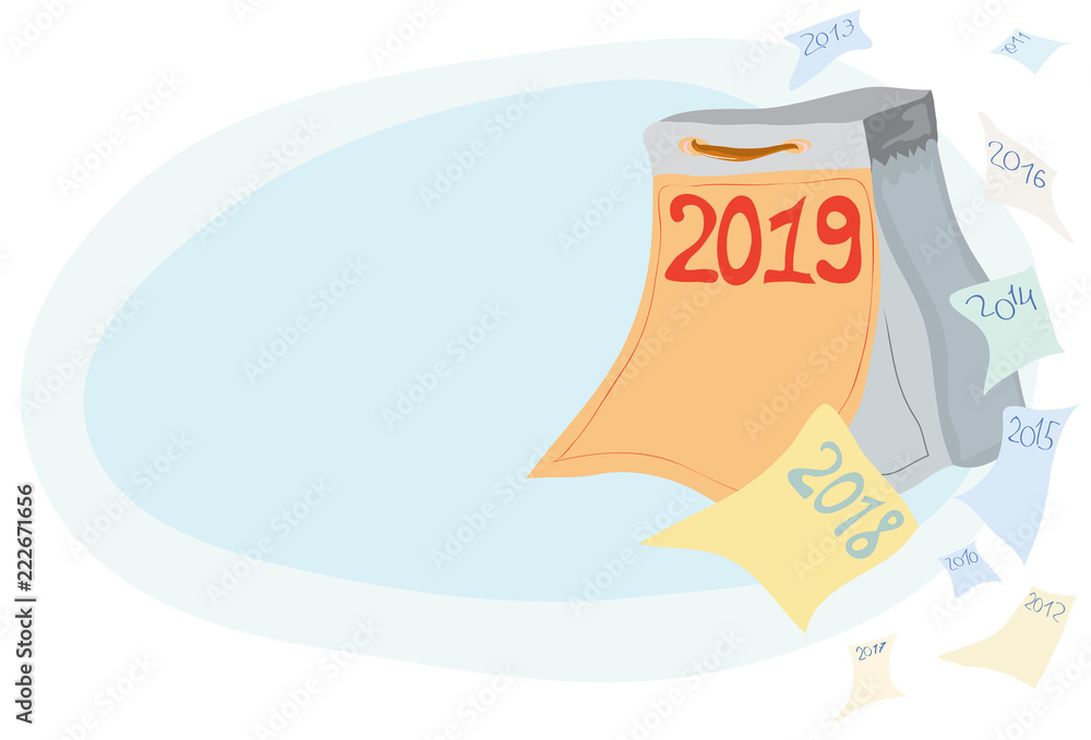 beginning of the new 2019/ Tear off calendar with flying leaves of